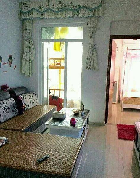 这是客厅,面积不算大,不过也足够用了。前面的两道门,右边是卧室,左边是阳台