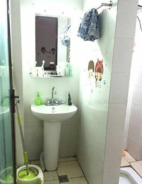 这是卫生间,外面是洗手池,里面是蹲便器,我还是觉得蹲便好,上厕所有种酣畅淋漓的感觉,而坐马桶则会让人感觉意犹未尽,挺难受的,而且蹲便也比马桶卫生