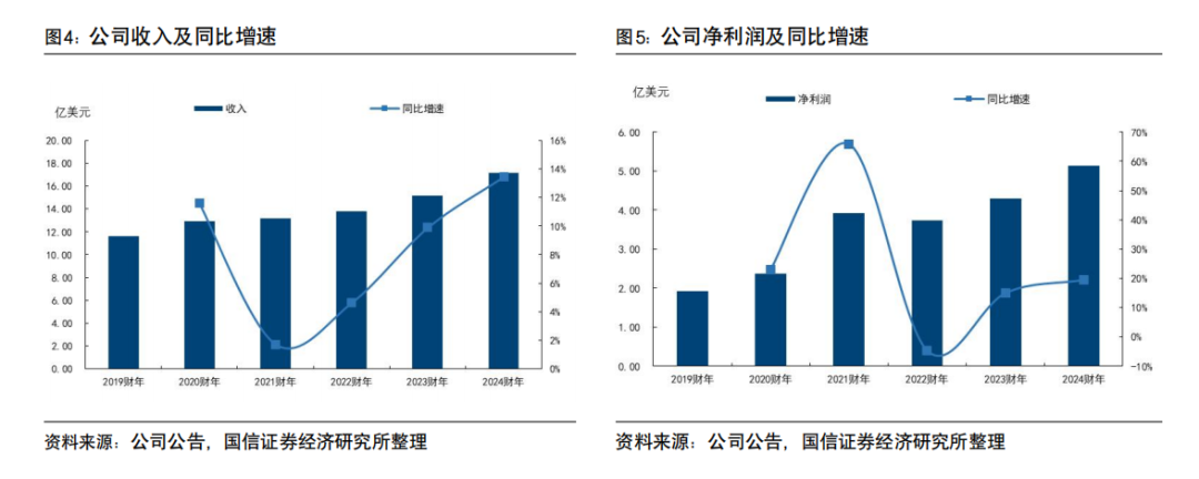 2024财年公司实现总收入17.2亿美元,净利润5.1亿美元,ROIC为37.8%。公司经营活动有持续且不断增长的现金流产生。